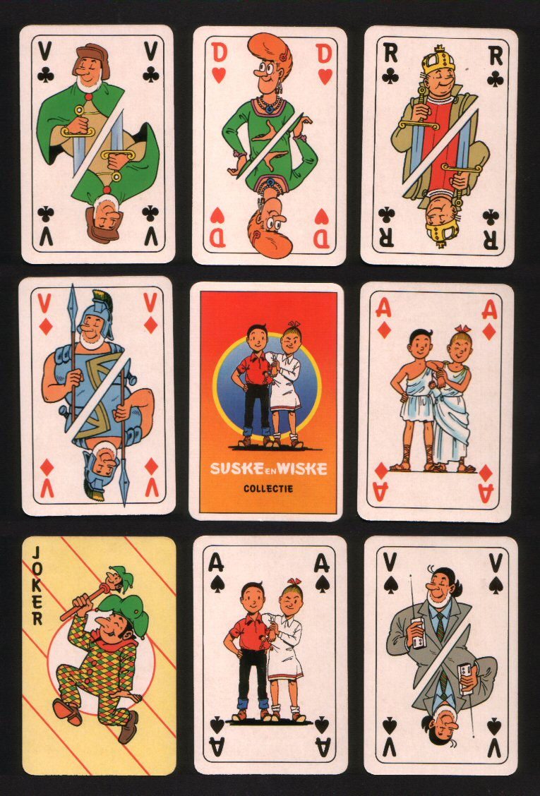 ![]() BEL104 | Non-standard playing cards courts. Double Deck Suske Wiske collectie, nice cartoon court cards 52 + 2 special Jokers + 52 + 2 special Jokers in Double Deck box. One deck is opened but still MINT and the other deck is Mint-sealed | £30.00 | ||