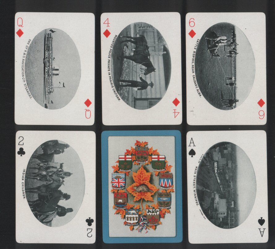Hoch V sca22 | Non-standard playing cards. Canadian Pacific Railway News Service, circa 1910. Wide 52 oval scenes + special Joker of Totem Poles + index cards listing all scenes + advertising card, all excellent condition | £75.00 |