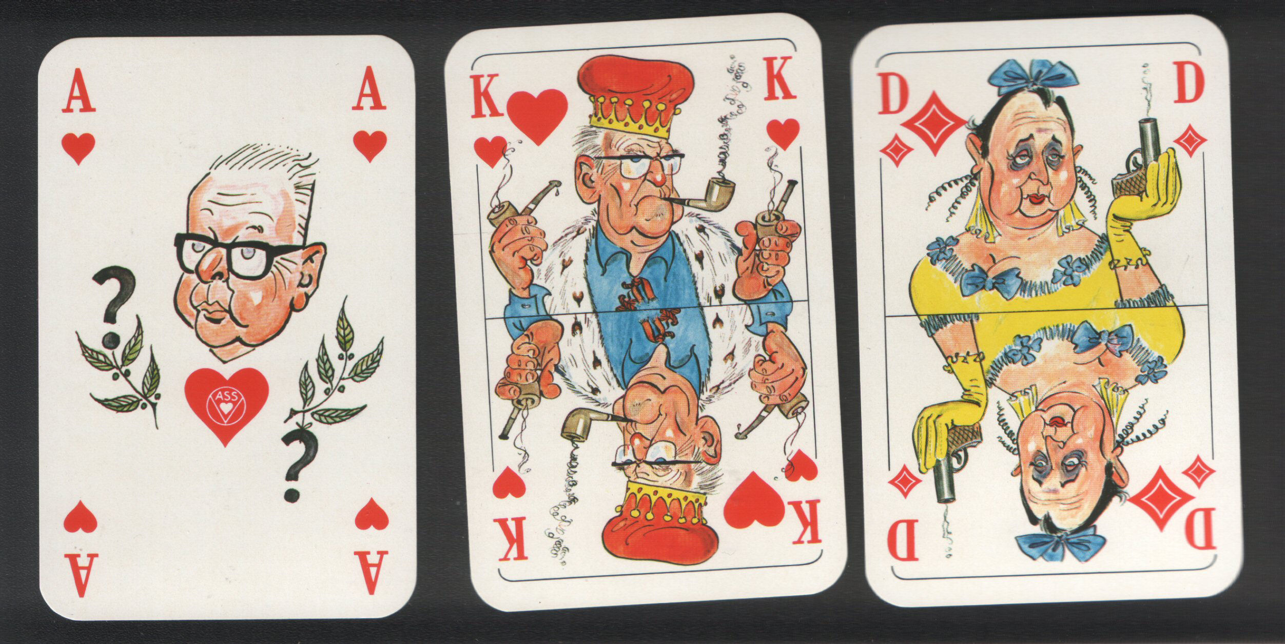 Non-standard playing cards. Skat politisch 1976 cartoon caricatures on courts & humourous drawings on several of the pip cards, complete 32 + 2 spare cards +box M | P.O.R | |