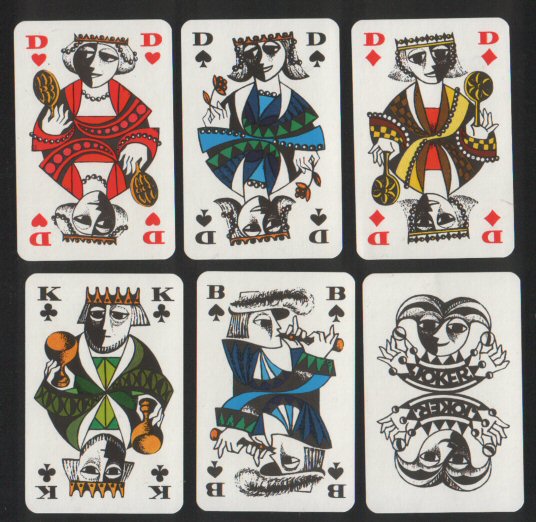 | GER077 | Non-standard playing cards. Senioren 1970, unusual pip playing card designs and beautiful court cards, 52 + special .Joker, all mint | P.O.R | |