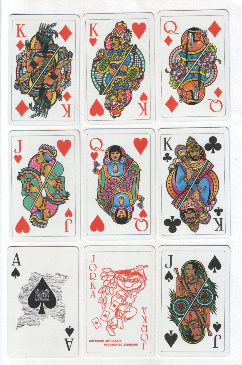 . | Non-standard playing cards courts. Beautiful deck of cards, nice art, courts depict ethnic types of this country 52 + rare special joker + fold-out leaflet of information + box, all MINT | N/A |