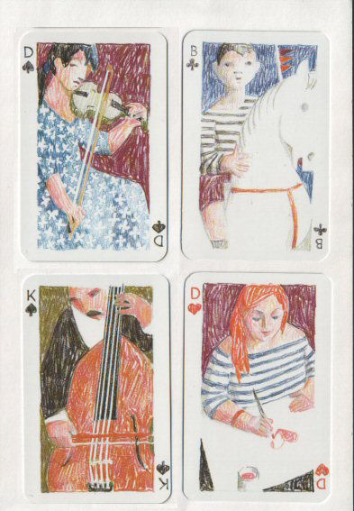| SWI028 | bb058 | Non-standard playing cards. Basler Fasnachts 1989. allegorical designs by Karin Schaub, depicting the carnival of Basle, 52 + 3 special Jokers all Mint. + box good | SOLD |