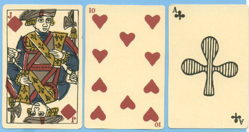 | SWI012 | same as Braun 1263 | Non-standard courts. Rococo by Muller, same as mini-12231 but patience size, extremely beautiful playing cards , embellished aces, 52 + 2 special jokers + box mint | N/A |