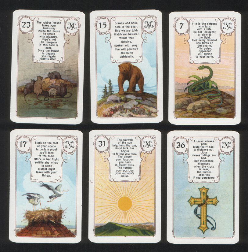 Non-standard playing cards.tt. Lenormand by J.M.C.1970, based on the 19 th century card diviner. Complete 36 card deck + booklet. All Mint + box good nice art | N/A | |