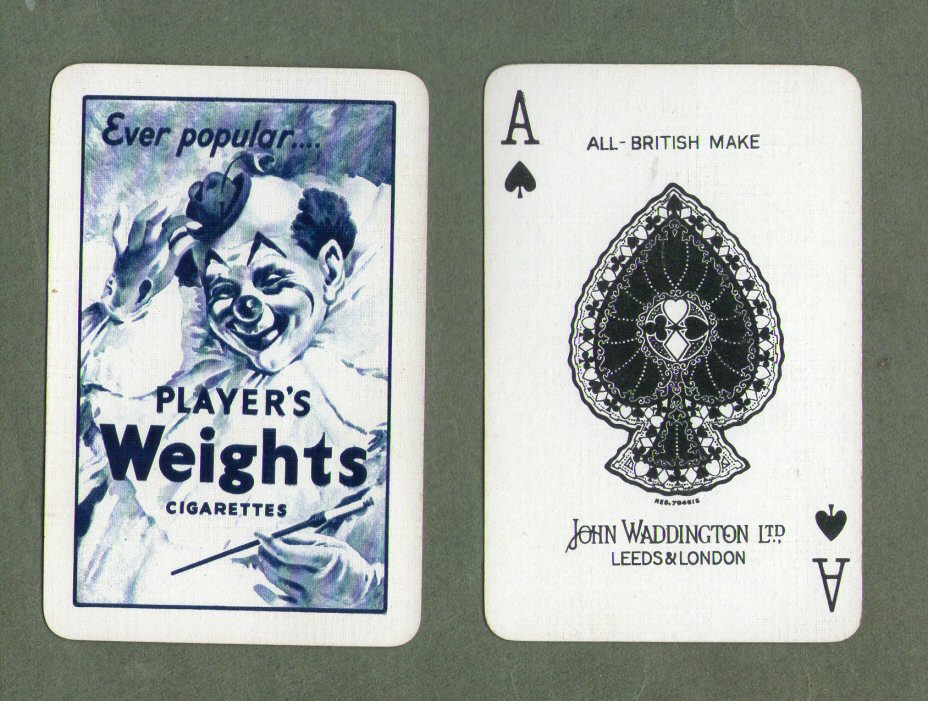 advertising playing card. Players Weights cigarettes, clown back red, 52 + 2 Jokers + box Good | £10.00 | |