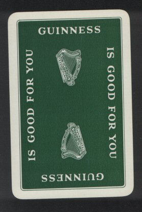 advertising. Guinness playing cards . slogan on reverse "Guinness is good for you" with harp. white on green. 52 near-mint + box ( same slogan & green ) vg | SOLD | |
