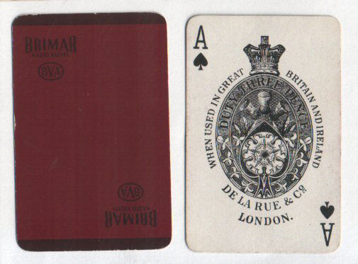 | UK1088 | Non-standard courts playing cards. Perma cigarettes and tobacco, lovely little mini deck with the brand across the courts, circa 1940's, all v-nm + box fg | £ 8.00 | |