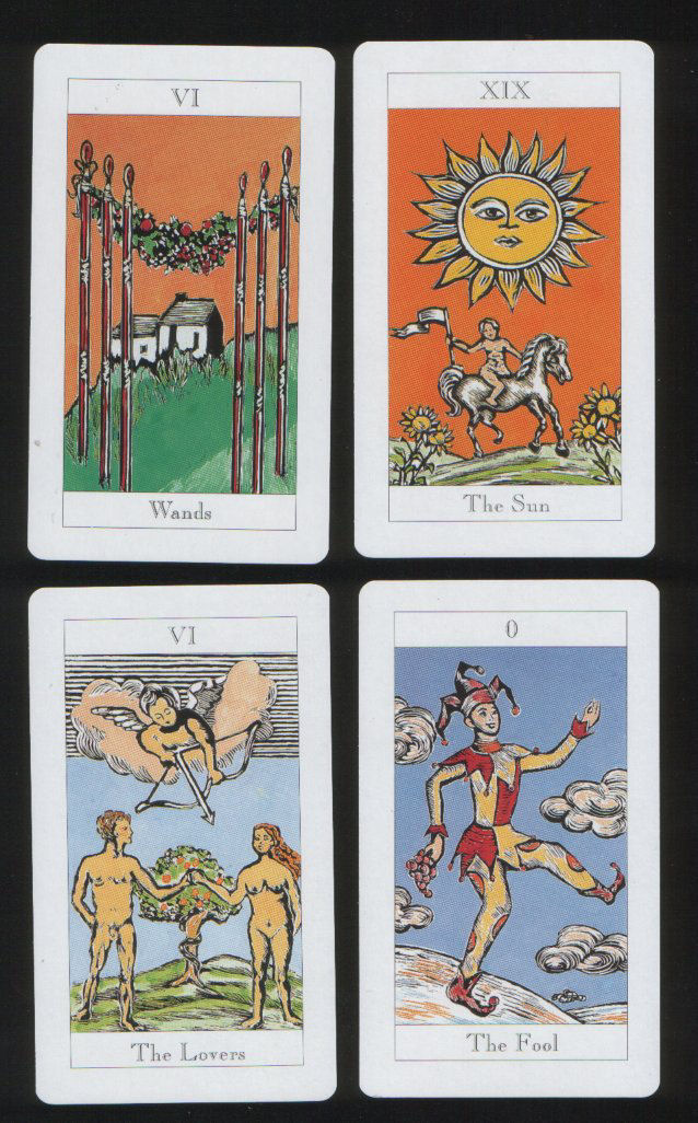 Non-standard playing cards. Tarot by Jonathon Dee. A special set of 78 cards designed by artist Shirley Barker, comes housed in a special extra large box containing a beautiful colourful hard-back book 64 pages, as a tuition guide for using the cards. Delightful set of cards, all MINT | £30.00 | |