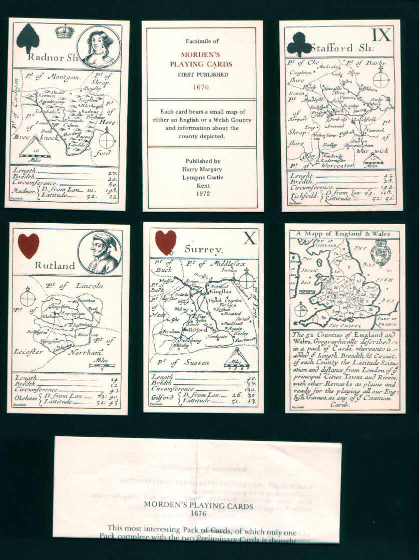 Non-standard playing cards. Morden's P.C. 1676, this is a special reproduction of that rare deck produced in 1972 by Margary, complete deck + sc + lflt + box, all MINT | £22.00 | |
