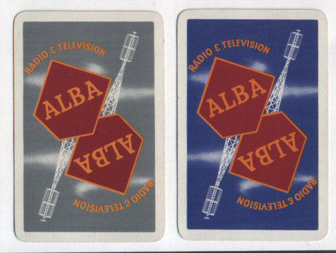 Advertising playing cards. dd. ALBA radio & television, backs show old-style radio masts for broadcasting, 52 + 52 dd in sp. Dd box, all nm | £36.00 | |