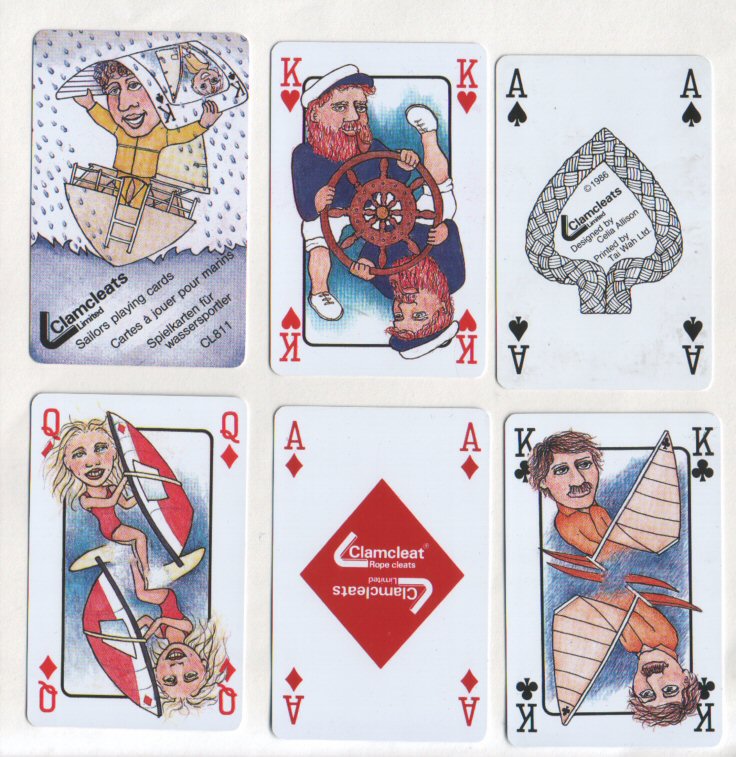 Non-standard courts playing cards. Clamcleats. Unusual courts cartoons advertising yachting & boating accessories. Pretty deck 1986. 52 + spare card. Mint. no box | £15.00 | |