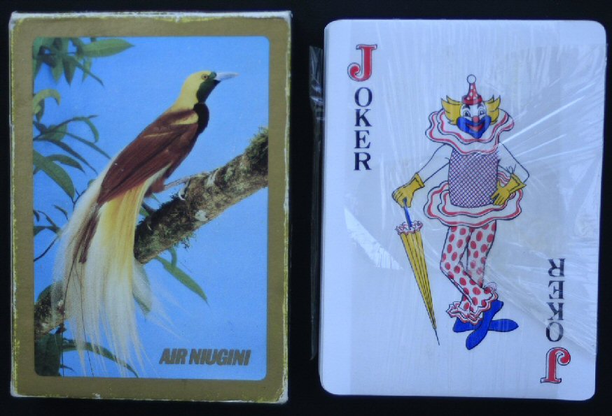 ad. Air Niugini, rare airline deck from the Polynesian Pacific area, backs show beautiful exotic tropical bird with long flowing tail, 52 + 2 jokers, sealed, all MINT + outer box good | £25.00 | |
