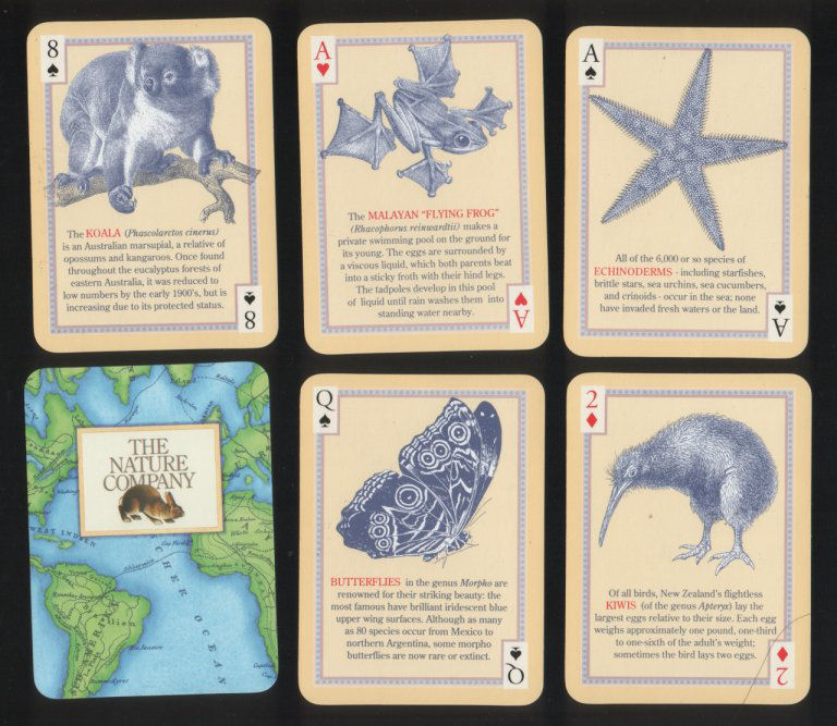 Non-standard playing cards. The nature Company 1992. very beautiful art of life on earth, fish, birds, mammals, etc wide cards. 52 + spare card, all mint | N/A | |