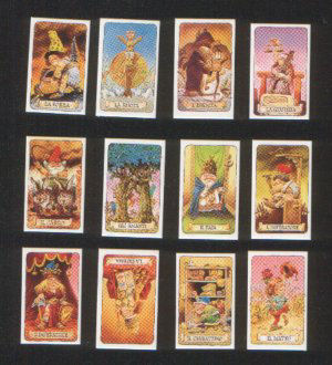 fortune telling The smallest Tarot on the World. Miniature deck approx .25 x .5 of an inch, ( 14 x 22 mm ) housed in a tiny box and then housed in a second larger box. Contains 22 great Arkana cards of the Tarot of the Gnomes, an amazing mini deck, perfect mint condition, incredible colouring and art. nice quality cards. |