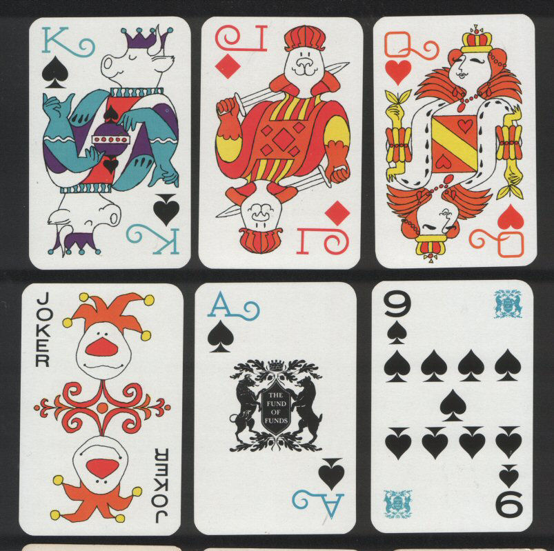 Non-standard playing cards. IOS Tournament, beautiful art non-standard courts and pip cards delightful humorous art, 52 + spare card + special Joker, all MINT | sold | |