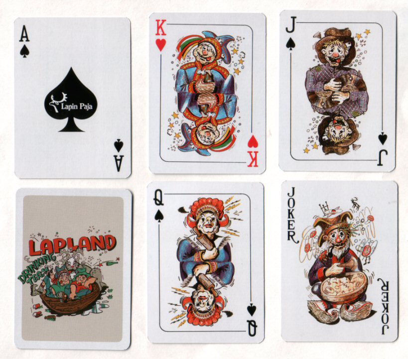 Non-standard courts playing cards. Lapland, delightful art of drunken lapps in cartoon form, 52 + special drunken Joker, all Mint | SOLD | |